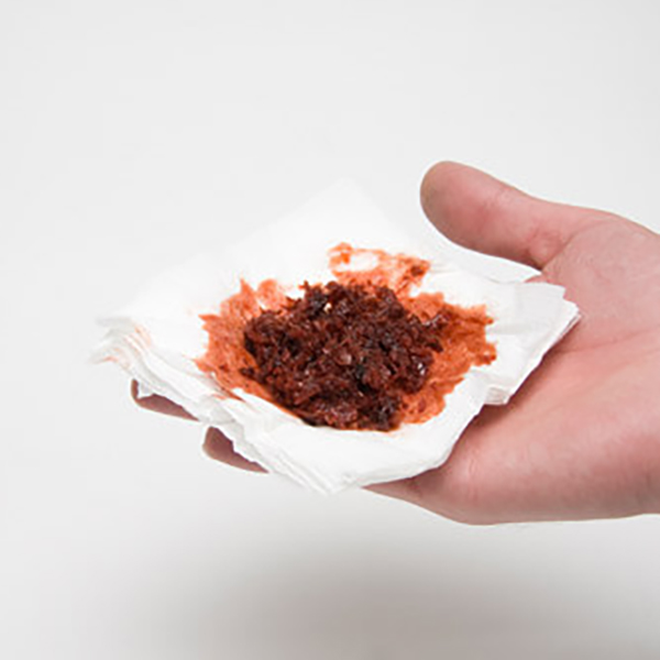 Взять бумажную салфетку и немного промокнуть смесь, чтобы впитать лишнюю жидкость.