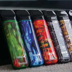 - OSMALL — аккумулятор на 350 мАч, отличный вариант для новичков. Нет возможности регулировать мощность, здесь фиксированный испаритель. Дизайн напоминает стик с рифленой поверхностью, благодаря чему сигарета устойчива и удобно лежит в руке. Физических кнопок на поверхности нет, активируется устройство автоматически при затяжке.