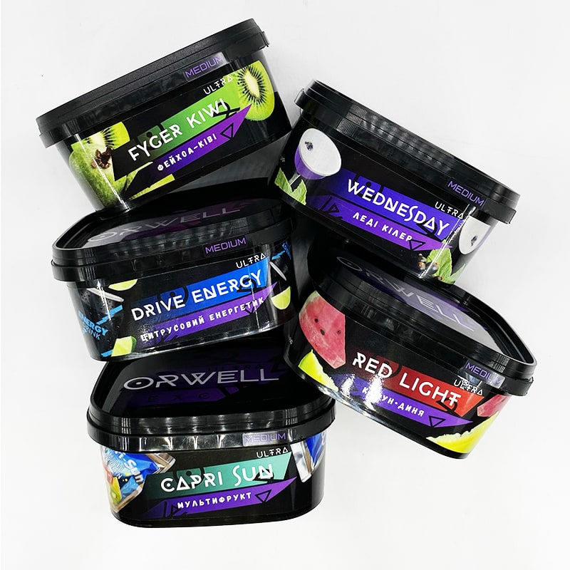 Компания Orwell создает исключительно табак для кальяна высокого качества, созданный из натуральных продуктов без использования химически опасных для человека веществ. Пользователи получают сочетание густого дыма с ярким вкусом и релакс от спокойного времяпровождения без головных болей на утро.