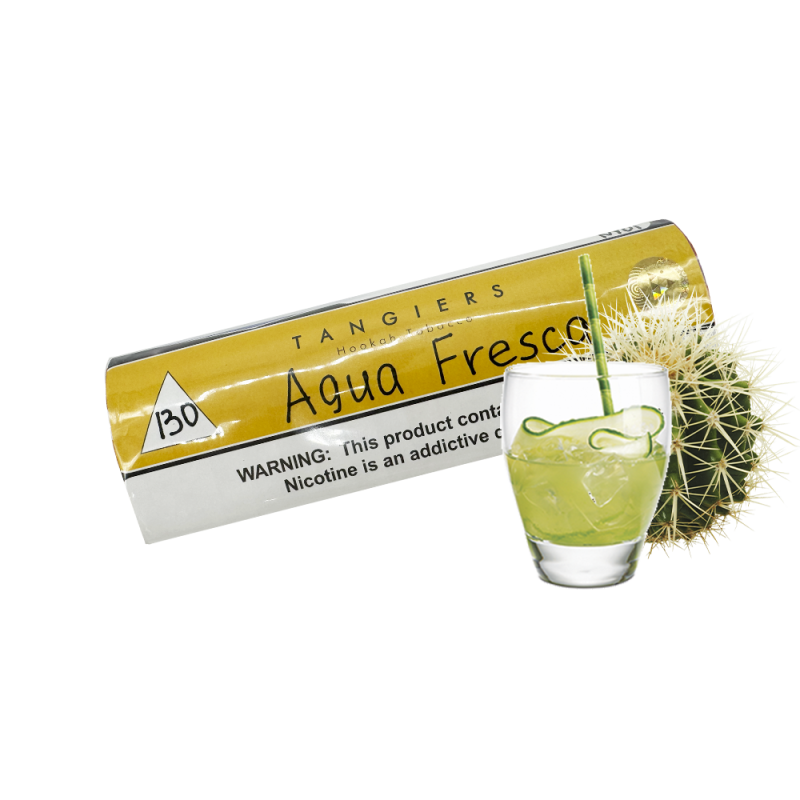 Тютюн Tangiers Noir №130 Aqua Fresca (Аква фреска, 250 г) для кальяну виготовлений із вибраних сортів тютюну. Незалежно Virginia, Burley або Oriental входить до складу, виробник завжди вибирає найкращі сорт! Що гарантує його видатні курильні якості. Завдяки продуманій технології обробки, у цього тютюну Висока жаростійкість, що дозволяє довше насолоджуватися кожною сесією куріння, не втрачаючи при цьому м'якість і повноту аромату. Він рівномірно прогрівається і вимагає частої заміни вугілля. Суміш легка в обігу, забиванні та відрізняється густим димом, що робить процес куріння максимально комфортним. Такий тютюн підійде у будь-якій компанії друзів.